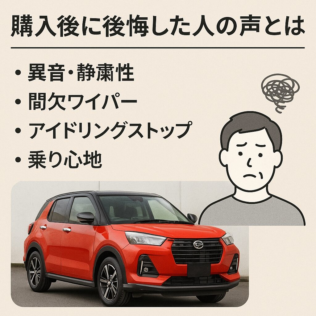 ロッキーは高コスパ車ですが、快適性や細かな仕様に不満を感じる人もいます。