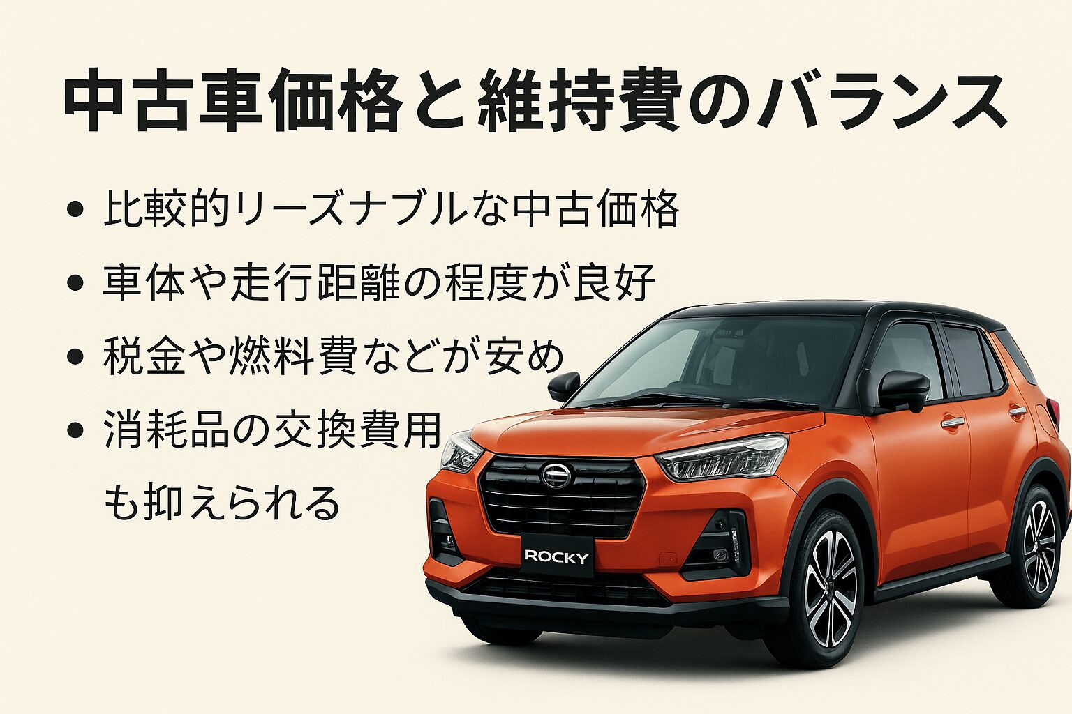 このように考えると、ロッキーは「安くていい車が欲しい」「日常使いを重視したい」というニーズにぴったり合った車であり、満足度の高い買い物になる可能性が高いと言えるでしょう。